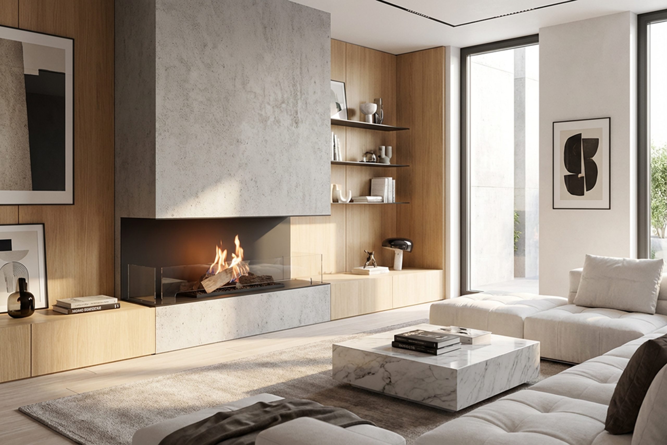 Das Ergebnis ist ein Feuer, das vertraut und natürlich wirkt und zugleich den Anforderungen zeitgenössischer Architektur und moderner Innenräume gerecht wird.
