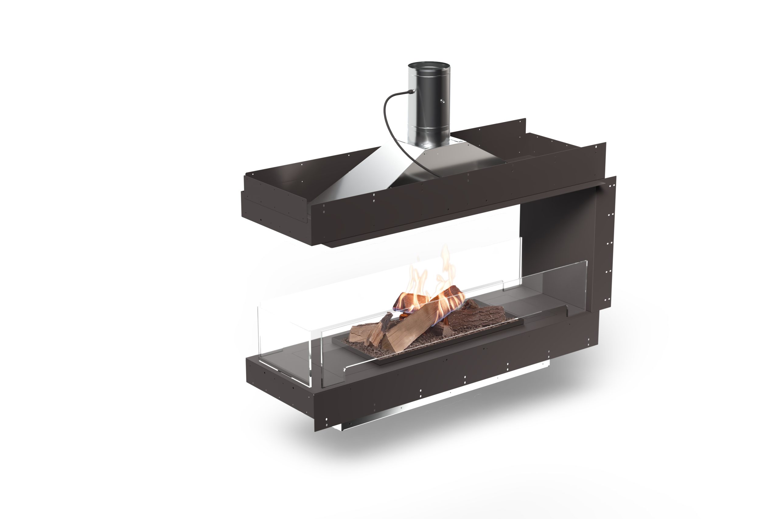 FORMA mit Schornsteinanschluss wird mit einem speziell entwickelten Zero-Clearance-Gehäuse geliefert, das angrenzende Bauteile schützt und eine sichere Installation auch in der Nähe brennbarer Materialien ermöglicht.