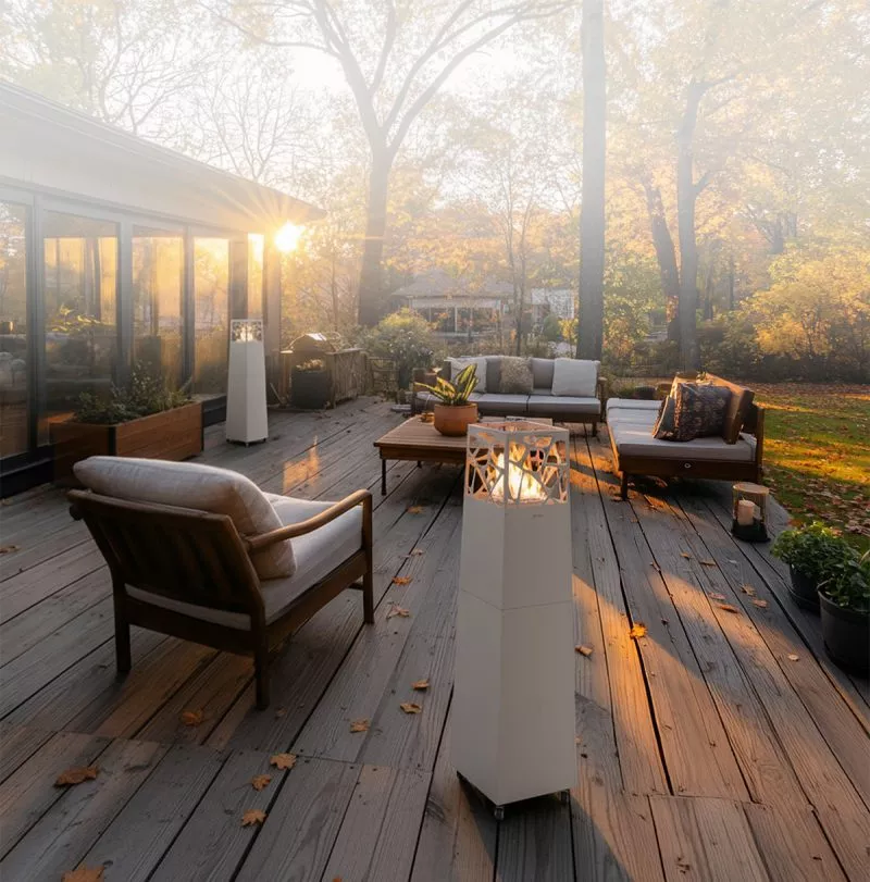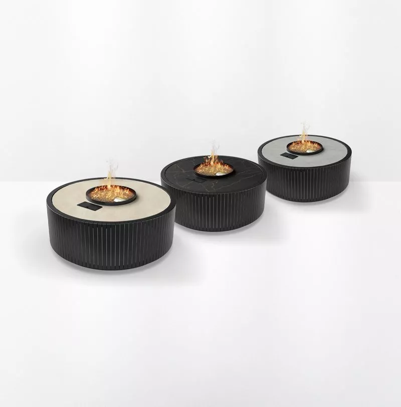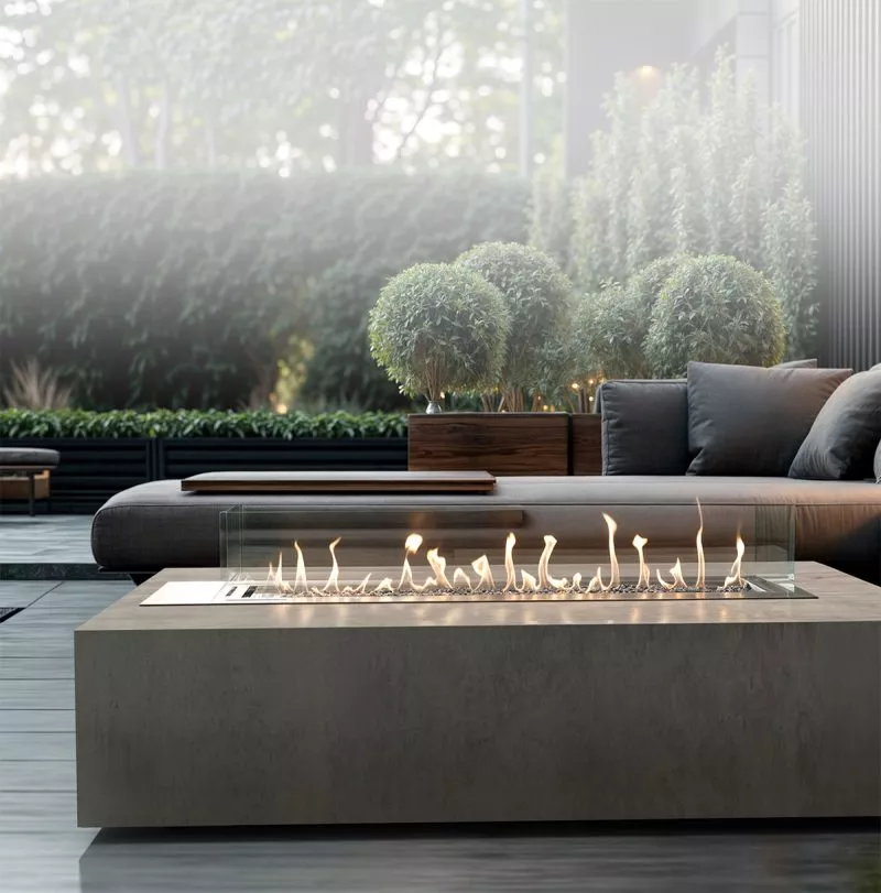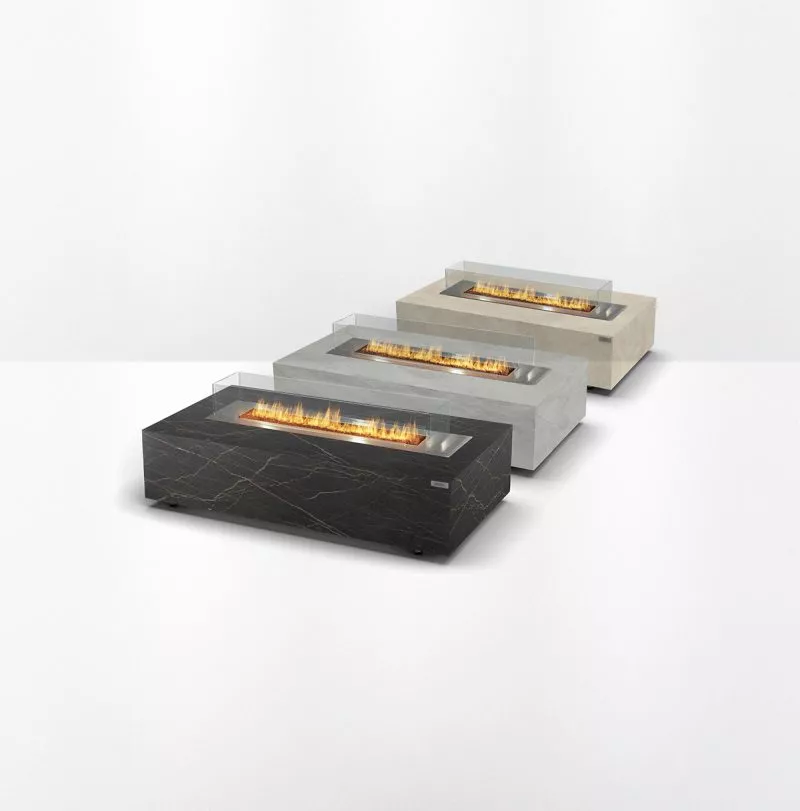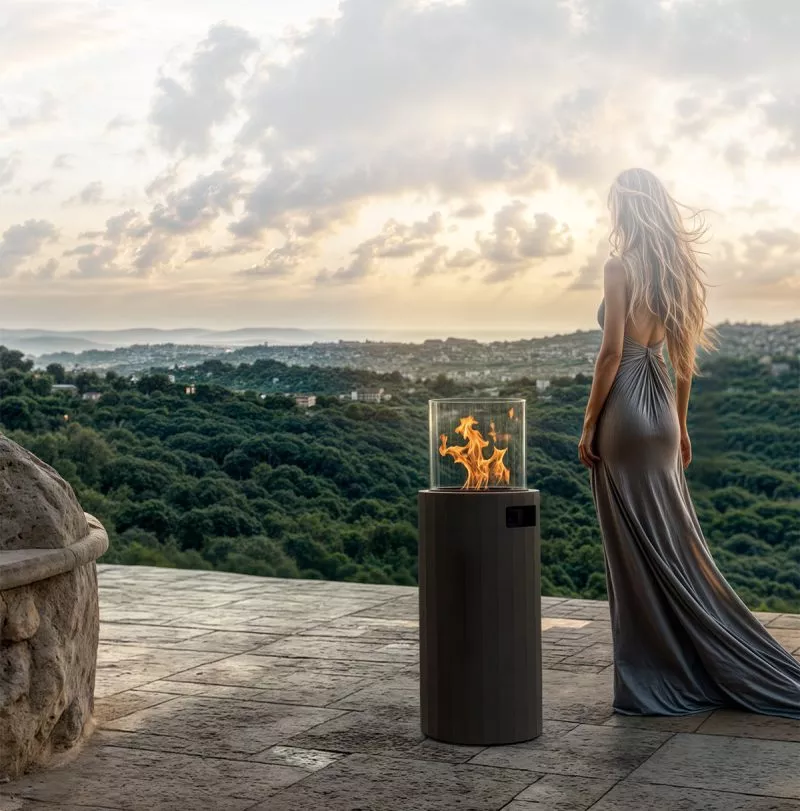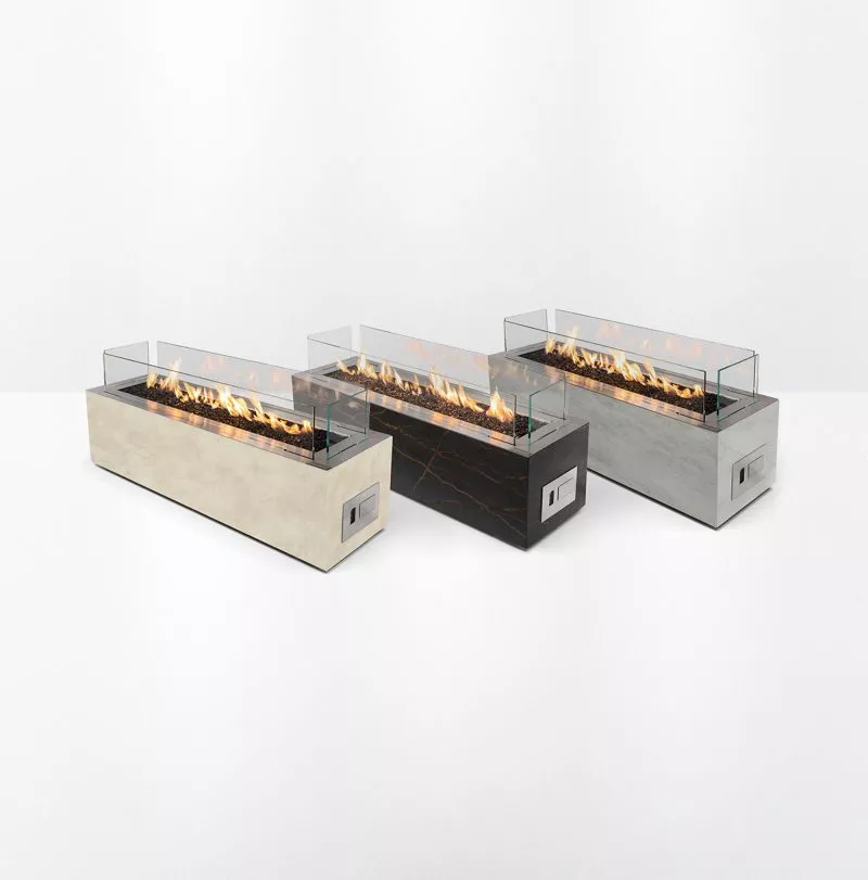 Diese Kollektion ist für alle gedacht, die nach stilvollen Lösungen für die Dekoration ihres Gartens oder ihrer Terrasse suchen. Die Schlankheit und die Form unseres Gaskamins für den Außenbereich verändern das Erscheinungsbild der Flammen völlig und sorgen für eine wunderbare Atmosphäre.