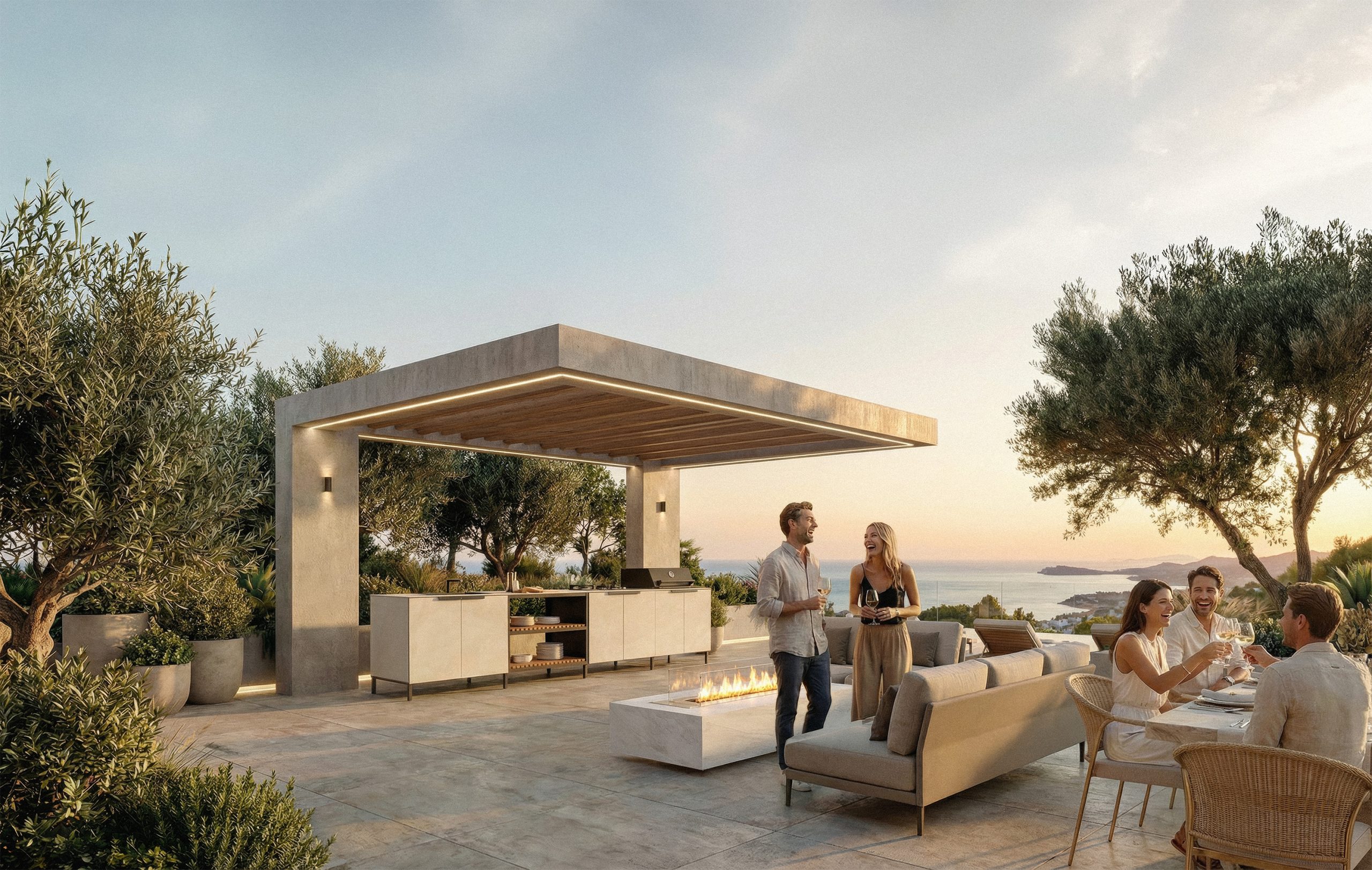 Outdoor Living wird nicht länger als Ergänzung zur Architektur betrachtet. Im Jahr 2026 entwickelt es sich zu einem vollständig integrierten räumlichen Konzept — gestaltet mit derselben Disziplin, Logik und Materialbewusstheit wie die Innenarchitektur. Der Fokus verlagert sich von dekorativen Terrassen hin zu funktionalen Außenbereichen, die den Alltag unterstützen: Kochen, Zusammenkommen, Entspannen und die Nutzung über alle Jahreszeiten hinweg.